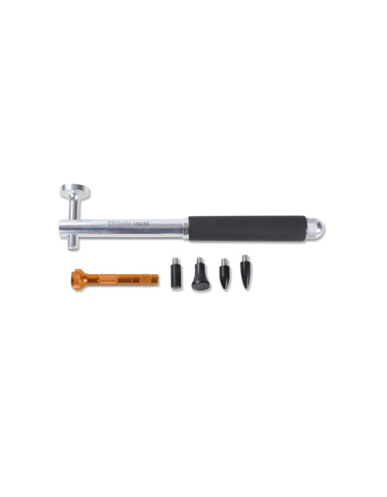 Martello in alluminio con testa tonda piana, puntali di plastica intercambiabili e bulino