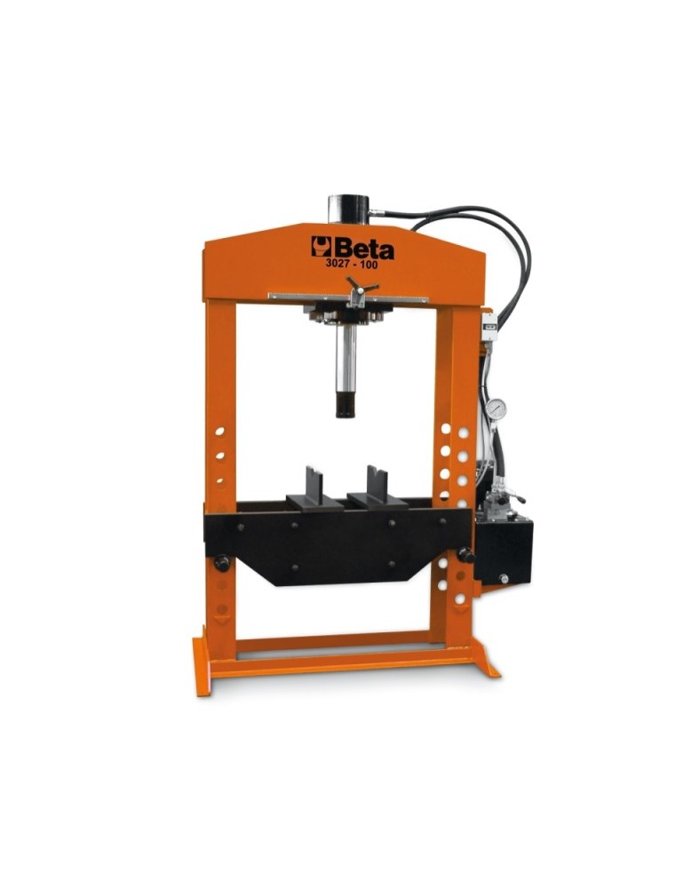 Caratteristiche tecniche: • Capacità massima 100 t • Alimentazione 380 V trifase • Frequenza 50 Hz • Potenza motore elettrico 1,5Kw • Centralina a doppia velocità • Comando con distributore a leva • Sollevamento bancale di lavoro tramite catene