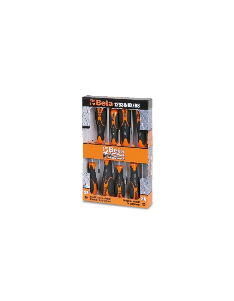 Beta 1293INOX/D8 Serie di 8 giravite in acciaio inossidabile