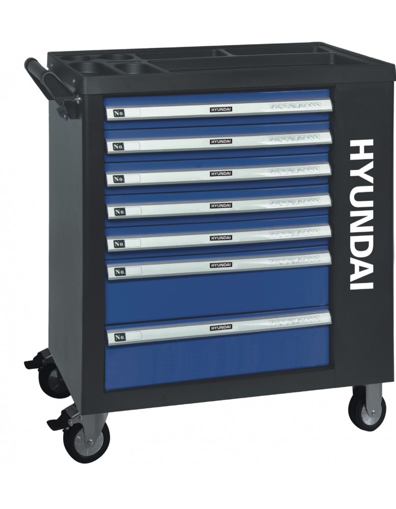 Carrello utensili Hyundai 298 pezzi con 5 cassetti + 2. Dotato di vassoi in spugna e cassetti con chiusura a chiave e scorrimento con cuscinetti a sfera. Cassetto 1: set di inserti 195 pezzi. Cassetto 2: set cacciaviti 21 pezzi. Cassetto 3: set chiavi assortite 45 pezzi. Cassetto 4: set chiavi a “T” torx ed esagonali 18 pezzi. Cassetto 5: set pinze e martelli 18 pezzi.