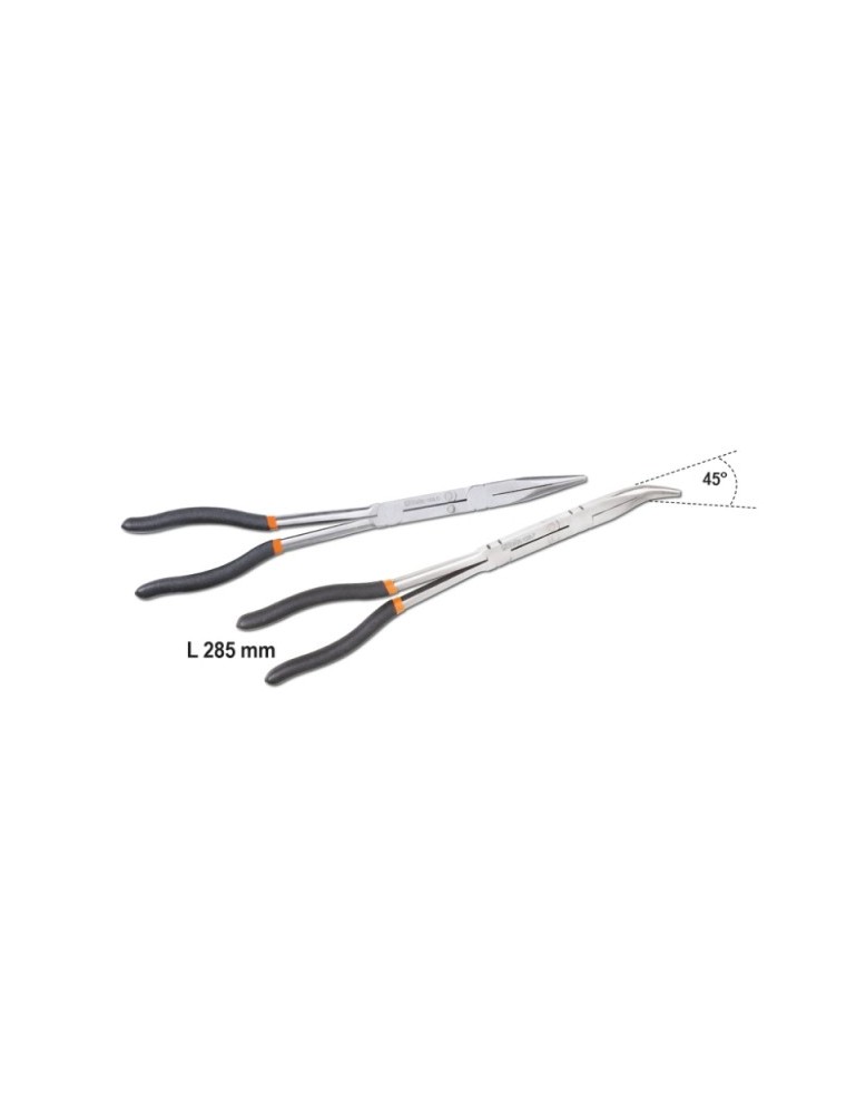 Serie di 2 pinze a becchi mezzotondi lunghissimi zigrinati con doppio snodo